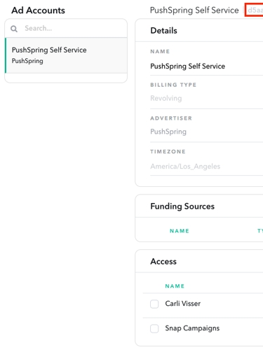Step 1. PushSpring must be a member of your Snap advertising organization in order to send data. The following steps will help you configure everything properly: